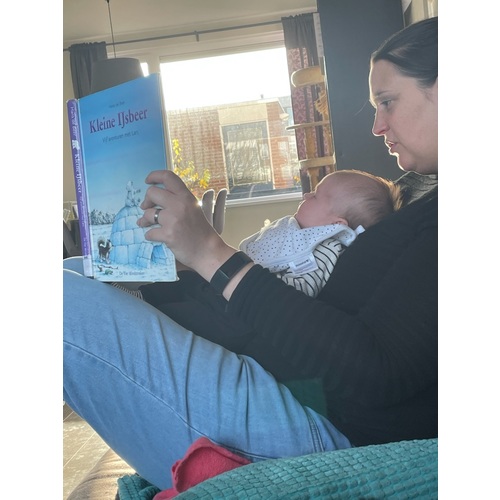 Ik lees al vanaf een week of 5 voor. Ons ritueel is nu dat ik voorlees voor het avond slaapje na de fles van 19.00/20.00u en 's ochtends na de fles van 07.30u voor haar ochtend slaapje. Beide zijn dan in haar ledikantje. Snachts na de fles van 23.00u gaat ze in de co-sleeper.