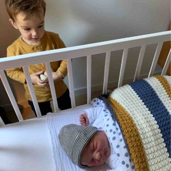 Als dekentje had ik zo’n combi ene kant wafelstof, andere kant katoen (had m’n moeder gemaakt, maar kan je ook kopen van koeka bijvoorbeeld), daar had ik in het begin 2 van op elkaar liggen in het wiegje tegen de kou.