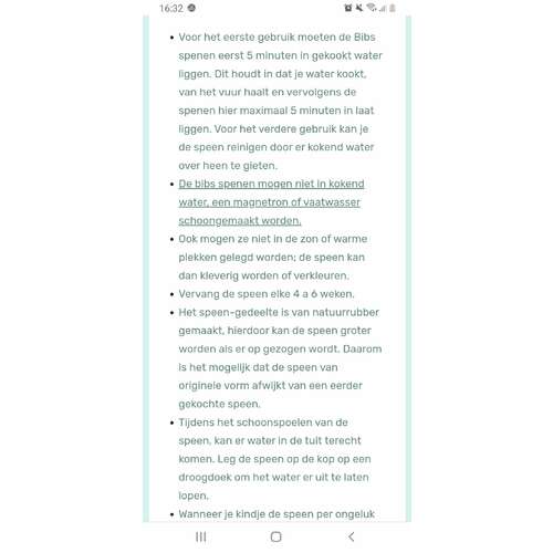 Ik heb ook bibs spenen maar dit nog niet gehad. Ik kook ze ook alleen eerste keer voor gebruik uit daarna eigenlijk niet en spoel ik ze alleen af onder kokend water. Misschien dat uitkoken beter is hoor maar wellicht dat het daar mee te maken heeft? Meen ook dat je ze na 6 (?) weken het beste weer kunt vervangen.