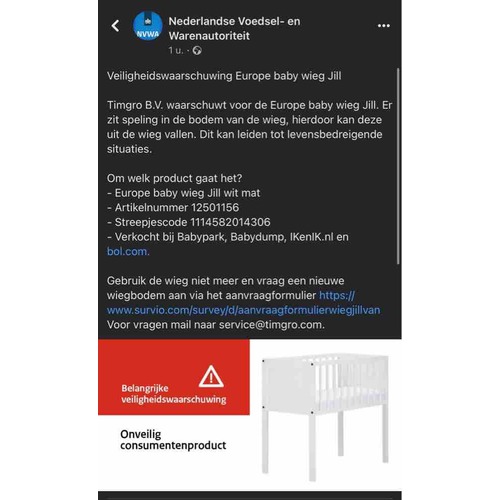 Ik heb niet eens een email ontvangen. Het is dat ik het via Facebook zag. Ons bedje is ook muurvast, maar moet er nu niet aandenken om haar erin te leggen. Ik heb haar grote bed maar in onze kamer gebracht 馃ゴ