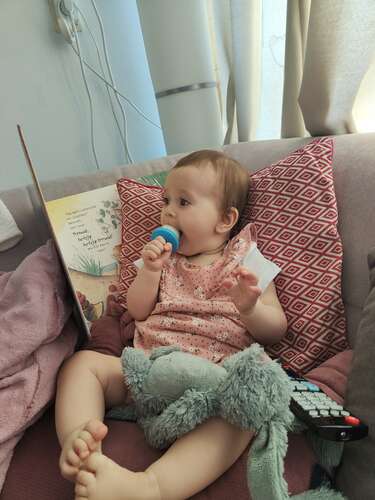 Deze gebruiken wij ook. Het is zeer makkelijk in gebruik en Anne-Sophie kan het makkelijk vasthouden om er van te genieten.