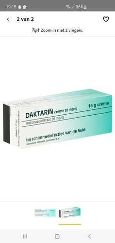 Vraag eerst advies bij een arts voor je daktarin zomaar gaat smeren. Als het geen schimmel is waar ze last van heeft kan het het juist verergeren (zelf ervaring mee helaas)