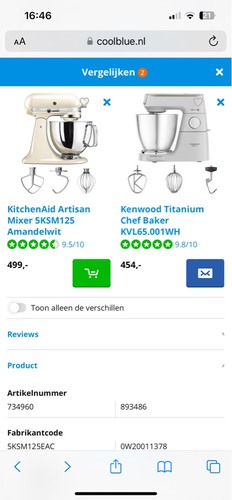 Ik heb een kitchenaid. Vooral van wege de rode kleur maar o wat een heerlijke machine. Ik maak vaak grote hoeveelheden brooddeeg om in te vriezen en die machine kan dat makkelijk aan. Ook pizza deeg of cake beslag is zo heel weinig werk. En het staat nog super op men aanrecht ook dat ik hem eigenlijk nooit opruim maar lekker laat staan. Dan gebruik ik hem namelijk ook weer sneller. Ik vind hem ook ontzettend makkelijk in gebruik.