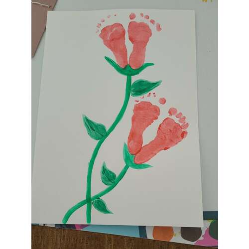 Toen mijn oudste nog te klein was om echt te knutselen had ik dingen gemaakt met geverfde handjes/voetjes. Een vaas met bloemen (handjes), een vlinder (voetjes), rupsje nooitgenoeg (teentjes), een zonnetje van zijn gezicht met zonnestralen (handjes), oma/mama en baby olifant (hand van jezelf en je baby), theedoos "bestempelen" (handjes en/of voetjes) enz. Met de handjes en voetjes kan je zoveel leuks maken!