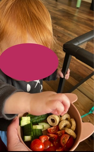 Ze eet hapklare stukjes (bv cherrytomaatjes in kwarten). Ik heb het gelukt ...