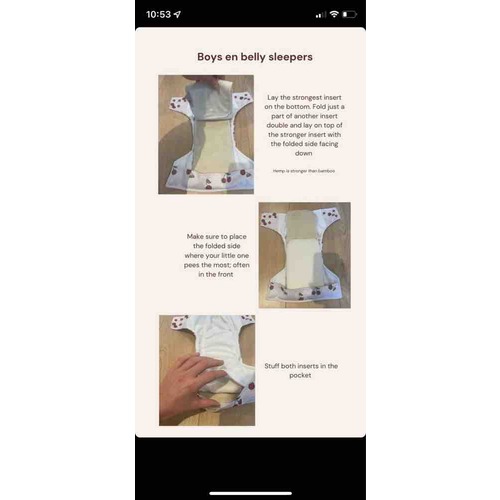 Wij gebruiken wasbare luiers van Happy Naps en dan heb je zo’n speciale nachtinleg. Die kan je combineren met een gewone en op een bepaalde manier erin doen en dan lekken ze niet door! Wacht, ze hebben een artikel erover. Zal ‘m even opzoeken