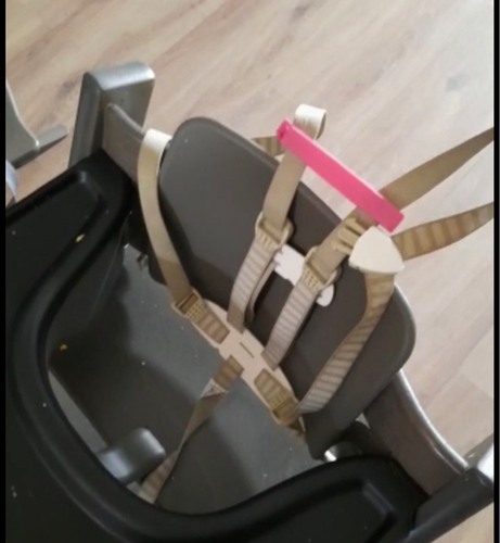 Hier hetzelfde, had eerst het plankje weggehaald maar las later dat het plankje daar moet want als ze verslikken en moeten hoesten dan zetten ze kracht op dat voetjes om het eruit te hoesten. Toen het trip trap tuigje gekocht maar die trok hij uit (hij wist zn armen eruit te wurmen) maar daar een enorm goede hack voor gevonden namelijk een broodzak clipje van ikea erop.