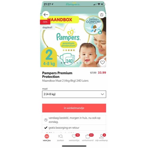 Als je googled op luieraanbiedingen kom je op een site die de beste aanbiedingen van dat moment laat zien. Ik koop zelf alleen luiers als er 50% korting op zit.