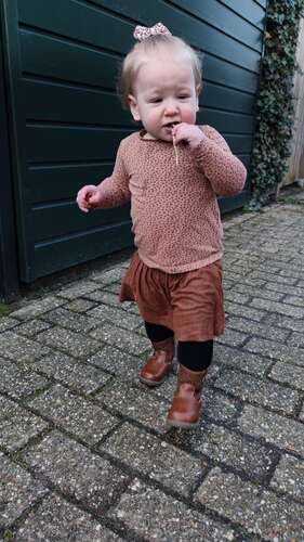 Mijn dochtertje heeft nu deze laarsjes maar ze kan al bijna 4 maanden lopen. Dit is maatje 20. Deze komen bij Scapino vandaan. Daar had ik ook haar eerste schoentjes vandaan. Deze hebben flexibele zool en kon ze super goed op lopen.