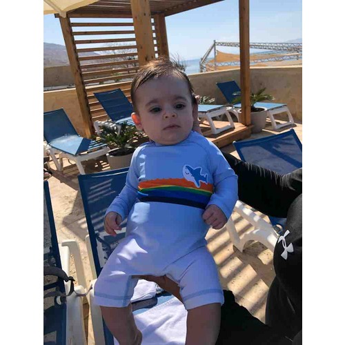 Mijn tip is om zo een pakje met armen en benen te nemen zoals die hierboven. Insmeren van een baby met alleen een badpak ervaar ik als onmogelijk 🤣