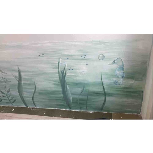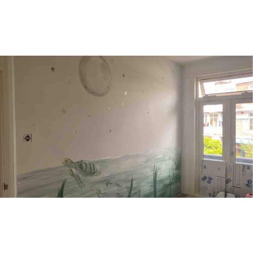 Is een beetje moeilijk om op de foto te krijgen we zijn helemaal verliefd. Uiteindelijk veeeel goedkoper uit geweest dan met behang of foto behang en het is precies wat we willen