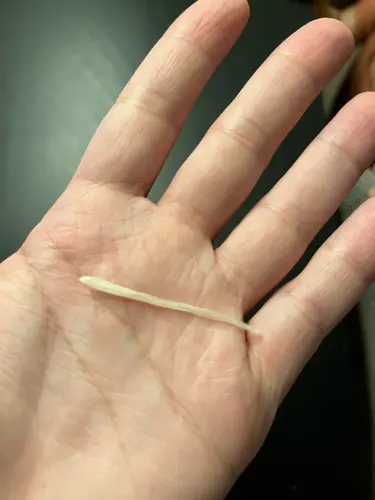 Dit is een graad van de vis. Als ze zo iets had ingeslikt had je het echt wel gemerkt. Geen zorgen maken mama.
