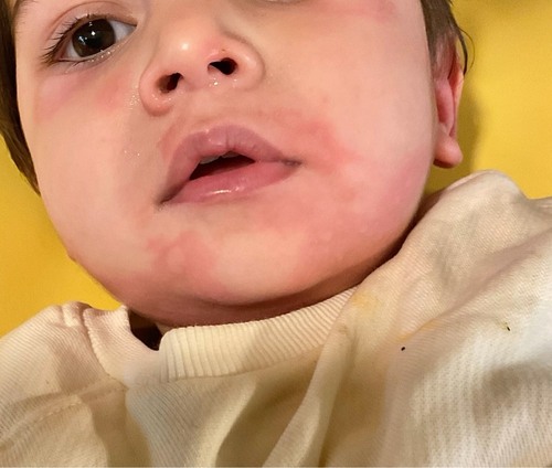 Ah ja dat lijkt wel heel erg op elkaar! Heeft ze dit eenmalig gehad of is het nog eens terug gekomen? En herken je ook grote rode vlekken voordat het zulke bultjes werden? :( begint in de ochtend met vlekken hier..