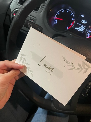 Hebben kleurtjes gekozen die bij het geboortekaartje passen (roest, oker en wit gemarmerd). Zal een foto posten van het resultaat. 😊