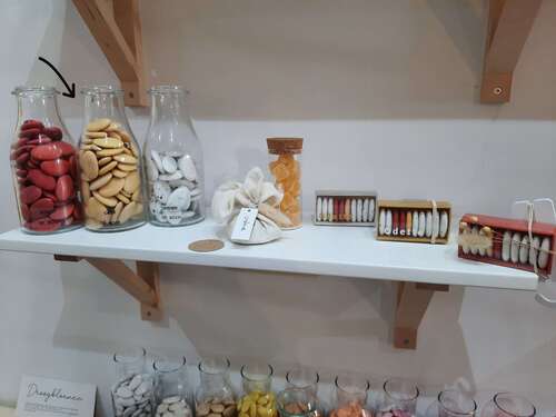De meter is bij ons limoncello aan het maken dus naast suikerbonen en berensnoepjes zullen er ook kleine flesjes limoncello bij zijn :) Bij mijn oudste hadden we suikerbonen in kubusvormige doosjes, de berensnoepjes in lange zakjes en dan mini Advocaatjes in zo kleine Weck potjes.