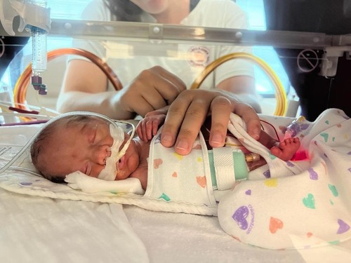 Met 35 weken en een gewicht van 1470 gram is Tes kunneman geboren op 15-09-2023 door middel van een spoedkeizersnede (foetale groeirestrictie met brainsparing vanwege de placenta en zwangerschapsvergiftiging) .