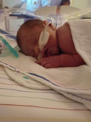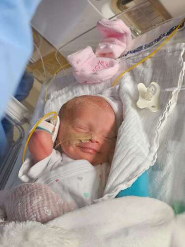 Ze moet nog een tijdje in de couveuse met sondevoeding en een infuus maar ze doet het super!