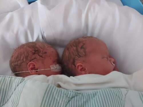 Op 13 september zijn onze dochters Bobbie en Charlie geboren. Ze waren toen 36+4 weken, weeën kwamen natuurlijk en ze deden het meteen super goed. Ze waren 45 cm en 2300 gram en 46 cm en 2500 gram. Ondanks hun goede start zijn we nog in het ziekenhuis vanwege mijn eigen herstel.