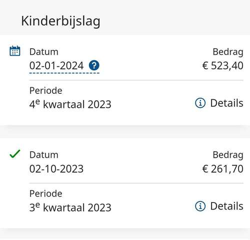 Zoon geboren 14-09, eerste betaling is in januari van het 4e kwartaal 2023