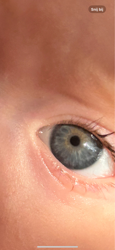 Zoontje heeft ook bruin vlekje onder pupil zitten. Ben benieuwd. Zie het over 1,5 jaar wel.