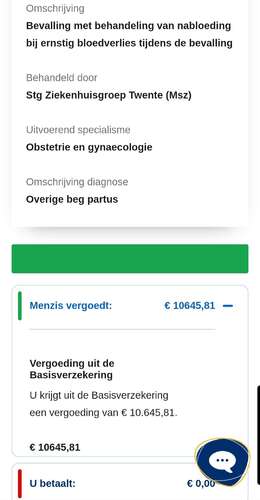 Hier eerste bevalling medische indicatie plus opname dus niks betaald.