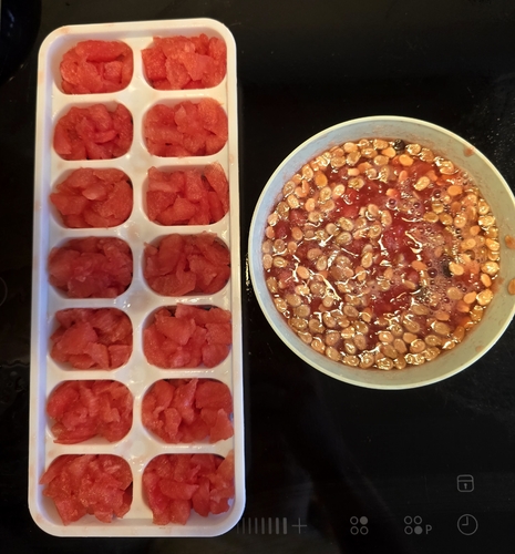 Heb ook watermeloen op stokjes ingevroren als "ijsje" en dat fietst er hier ook in. Met het nodige miepen want ja brainfreeze 🤣 maar ook daar zitten de pitjes gewoon in dus lekker laten zitten dan 🤭