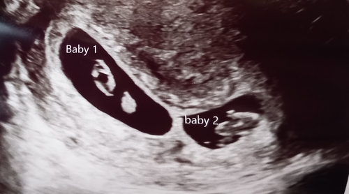 Zag je meteen dat je een tweeling had met de eerste echo? Ik heb net de eer ...