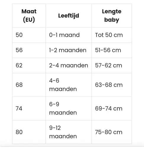 Ik vind het heel erg per merk verschillen, zeeman pakjes zit meneer in 68 en Primark pakje ook, andere maten is 62 nog te groot 😅 ik kijk gewoon naar hem, en niet naar de maat haha
