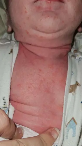 Huisarts bellen! Dit is inderdaad een allergische reactie! Geen idee of het ...
