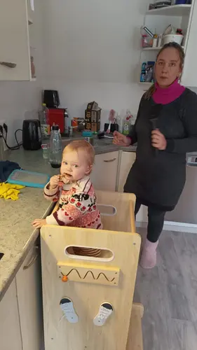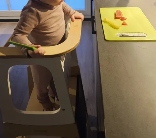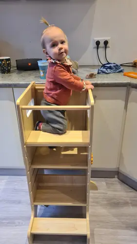 Zeker leuk als ze eenmaal goed klimmen en staan en ook wel mee willen kijken. Wat ik wel heb gemerkt is dat hij wel ergens moet kunnen staan waar hij nooit in de weg staat en ook niet alsnog de halve keuken doorgesleept moet worden. Denk aan een dichte kant van een kookeiland. Je zult anders zien dat dat ding steeds vlak voor het kastje staat waar je iets uit moet halen (uiteraard zal niet iedereen zich daar zo mateloos aan ergeren als ik dat doe 😉).
