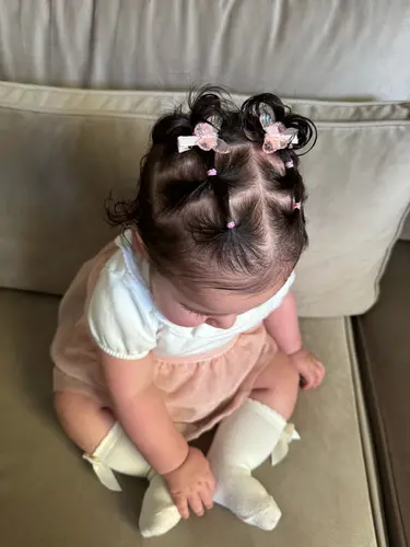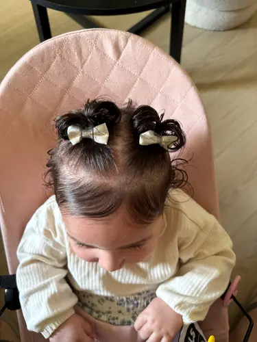 Mijn dochter heeft erg stijl haar dat alle kanten op staat.. ik kan net 1 staartje bij haar maken 🤭
