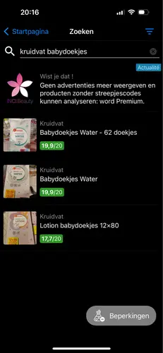 Water Wipes zijn echt de beste. Helaas ook de duurste. Een goed alternatief zijn die van Etos, daar zit ook niks raars in maar je merkt het wel wat aan de kwaliteit. Kruidvat zou ik niet doen, daar zitten weer stofjes in die je echt niet op dat babyhuidje wilt.