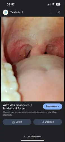 Hoii dit lijkt op een tonsilstone. Google maar. Je kan voorzichtig met een wattenstaafje het er proberen uit te duwen. Ik heb dit heeeeeeeel vaak gehad. Nu sinds een half jaar geen amandelen meer maar daarvoor om de haverklap inclusief ontstekingen etc.