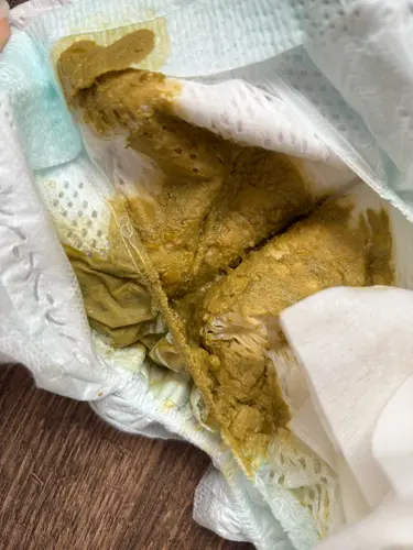 Iemand een idee wat die gel-achtige stukjes zijn in de ontlasting van ons zoontje? Hebben het paar dagen terug ook al een keer in een luier gehad en vandaag al 3 keer.