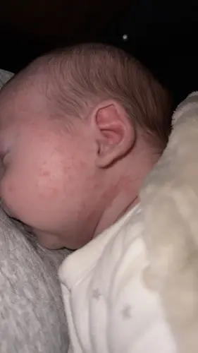 Lijkt op baby acne. Sinds ik bij mn dochtertje mistela reinigingswatee gebruik is het weg