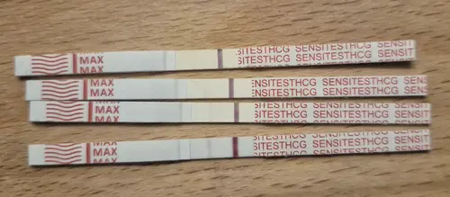Ik zou je niet te veel laten beïnvloeden door een te lichte test.. ik ben nu (middels ivf) 4 weken en 3 dagen zwanger van 1e verse terugplaatsing. Bloedtest weest goede hcg waarde uit op 22-1. Ik heb mijn eerste test ( van onder naar boven op de foto) op 21-1 gedaan, die was duidelijk positief. Gisteren (23-1) dacht ik toch nog eens testen om te zien of de test goed oploopt. Had ik opeens een heel licht streepje met ochtend urine. Hierna clearblue getest (ook op 23-1 wel met andere urine maar nog steeds niet gedronken) die was duidelijk 2-3 weken zwanger. Toen dacht ik nou test ik toch nog een keer met een sensetive test met dezelfde urine als de clearblue en toen opeens een duidelijke lijn (zie onderste test). Laat jezelf niet te gek maken. Moet je ook bloedtest doen? Die is het meest betrouwbaar.
