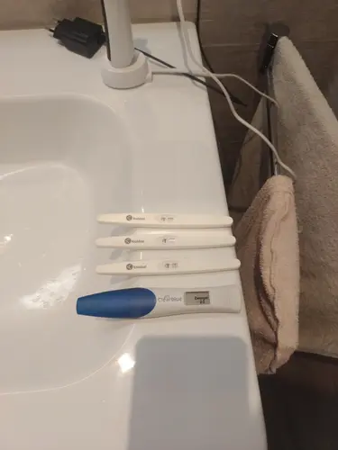 Bedankt voor je reactie! Fijn dat de testen bij jou weer duidelijk zijn. Ik ga morgen de huisarts bellen voor een urine test om blaasontsteking uit te sluiten ivm mijn klachten. Dan ga ik ook even vragen voor een eventuele bloedtest. Dit was mijn test vanmorgen, clearblue dus wel direct positief :)
