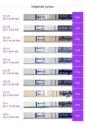 Hoi, dit was mijn oploop, ik ben vandaag gestopt met testen. CD26 was bij mij 10DPO (Dit zijn allemaal extra vroege testen) Bij mij begonnen het bij 13DPO echt duidelijke streepjes te worden. 🤞