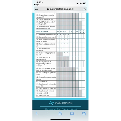 Ik heb sinds dat Luuk een paar maanden oud was al fysio en die geeft wel goeie tips. Hij is wat traag maar ach het komt allemaal wel. Elke dag hoop ik weer dat als ie wakker wordt en iets nieuws kan. Volgens de documentaire 'baby's' op Netflix kan dat.. Je vooral geen zorgen maken, iedereen leert uiteindelijk lopen ;)