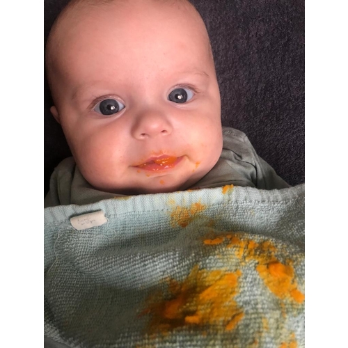 Wij zijn nu een paar weken bezig met groente, elke week een andere groente. Inmiddels wortel ( vond ze erg lekker ) pompoen ( vond ze niet lekker ) bloemkool ( vond ze erg lekker ) broccoli ( vond ze niet lekker ) en zoete aardappel ( vond ze erg lekker ). Vanaf volgende week gaan we ook fruit geven. Wij geven dit in de wipstoel die we wat rechter op zetten en erg handig om billendoekjes/toetenboeners bij de hand te houden.