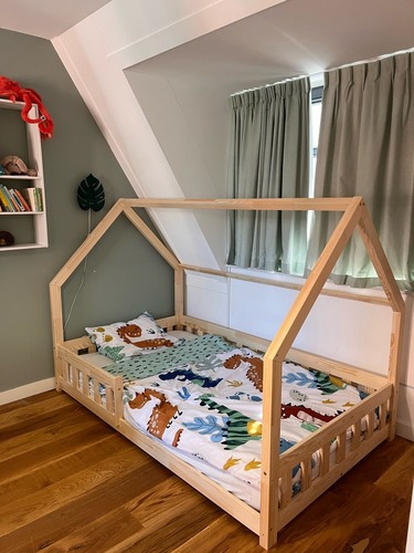 Wij hebben een huisjesbed van marktplaats (echt een huisje met raampjes en vensterbank). We hebben mijn dochter voorbereid en het een paar keer laten zien voor ze erin ging slapen en ze vindt het geweldig