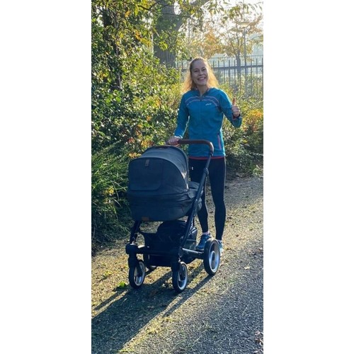 Hier ook een Thule met 3 wielen (Urban Glide 2). Wandelt Idd al heel fijn en heb korte stukjes gedribbeld op heel glad asfalt, dat ging ook lekker. Vooral omdat hij zo goed met 1 hand te sturen is. Met echt hardlopen wacht ik Idd tot ze oud genoeg is om goed in de wandelwagen te zitten (6+ mnd).