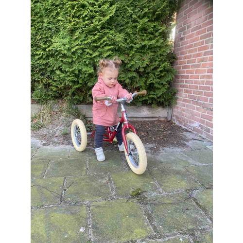 Hier word veel gefietst, deze kan naar een tweewieler. Nu is driewieler handig omdat ze echt net met d’r teentjes bij de grond kan. Ze gaat inmiddels er hele rondes mee naar de speeltuin en kan goed sturen!