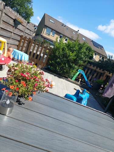 Bedankt voor de reacties. Ik ben er wel altijd bij, maar even de plantjes water geven en hij is eroverheen (in mn gedachten), dus ik zit gewoon niet lekker in de tuin. Elke keer opstaan als ie dicht bij t hek komt.