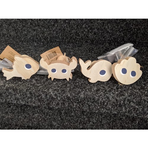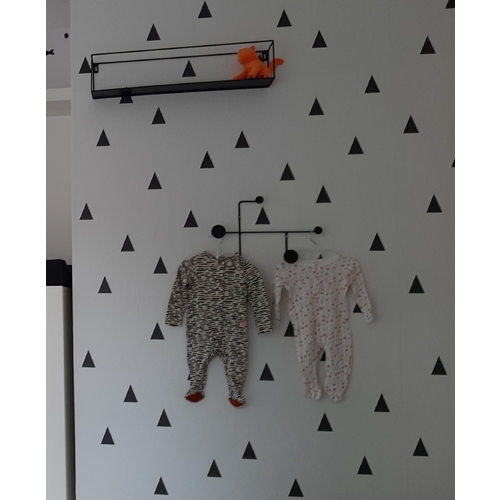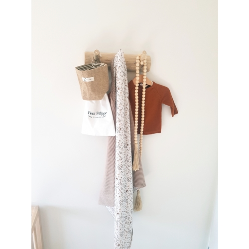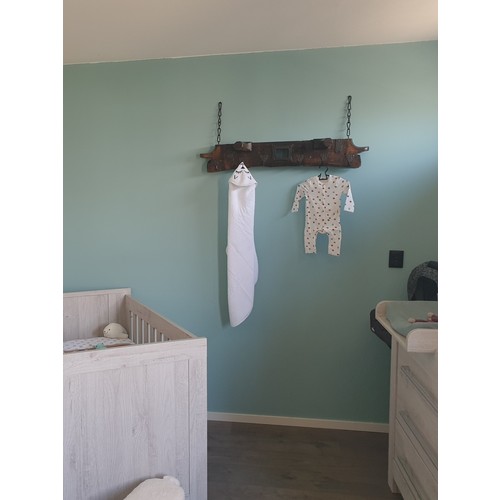 Je kunt ook leuke haakjes kopen van diertjes bijvoorbeeld en deze zelf op afstand van 30cm bij elkaar hangen of leuk combineren