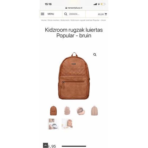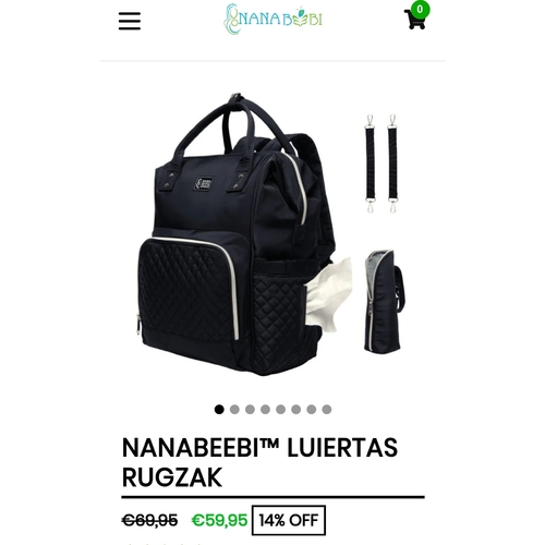 Ik ben voor deze gegaan. Merk NanaBeebi. Is geen leer maar stof. Kun je met haken aan kinderwagen hangen en handig op de rug. Veel vakjes.