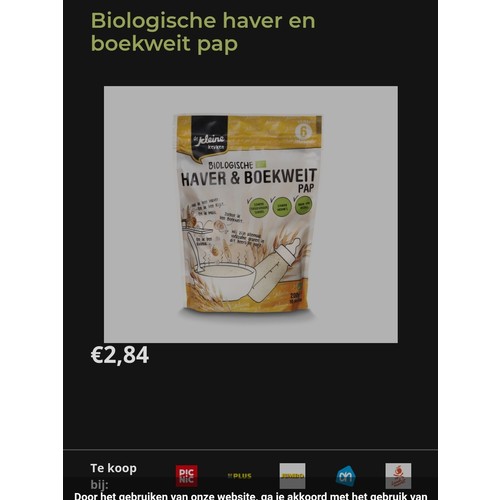 Je hebt van de kleine keuken boekweit en haver pap dit is voor kindjes tussen 4 en 6 maanden hier zitten meer vezels in