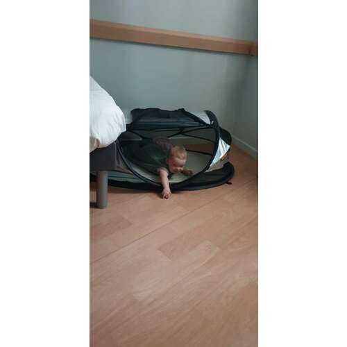 Wij hebben deze! Werkt perfect! En ze kunnen er tot ong 8 jaar in slapen, en bij moeilijke nachten kun je er zelf bij liggen☺😄, ook kun je het matrasje eruit halen en heb je gelijk een box! Ennn het blaast zichzelf op🙏. Onze dochter krijst al bij het zien van een ander/campingbedje en bij deze niet. Misschien een tip😉