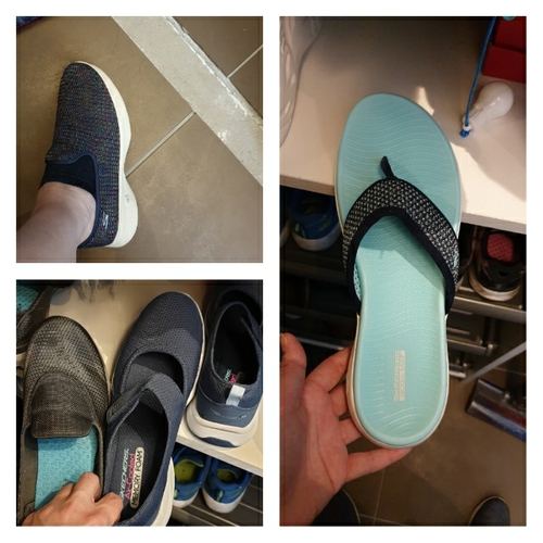 Ik draag nu mijn skechers die ik al eerder had gekocht. Ik vind die van mij leuk ook, met bloemen enso en ik heb ook zwarte skechers voor werk. Ga binnekort nog de slippers halen die er ook nog eens leuk uitzien en sandalen die krijg ik van me moeder. Ze lopen super lekker. Mijn voeten zijn iets dikker en ik heb erg last van mijn hielen en gedeelte onder mijn tenen. Komt echt bij mij door het gewicht wat ik niet gewend ben.