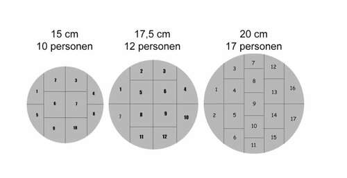 Wij kregen toen de tip van onze bakker om geen punten te snijden, maar de ronde taart allemaal in repen en dat weer in vierkante blokjes omdat de taart dus zo hoog en machtig is.